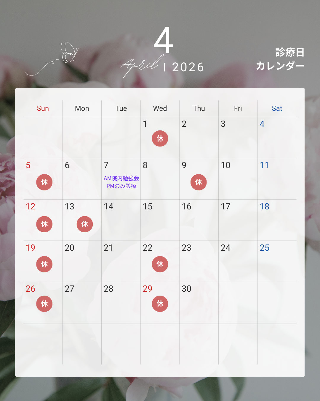 4月の診療日のお知らせです📢