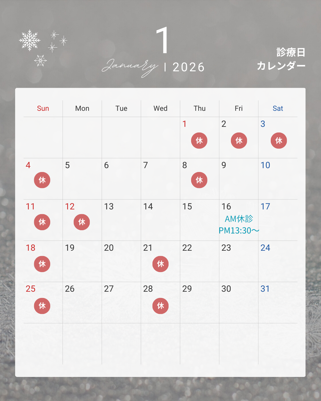 さて、2026年1月の診療日のご案内です🦷🍀